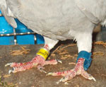 Banded pet birds usually can not be tracked by their bands. Racing pigeons can be returned to their owners by tracking the number on the band. If these pigeons are uninjured, they should be kept overnight and fed and watered. Often they just suffer from exhaustion and can be released. For more information on banded birds go to http://ncwildliferehab.org/newsletter/WRNCNewsletter_Jun05.html. |